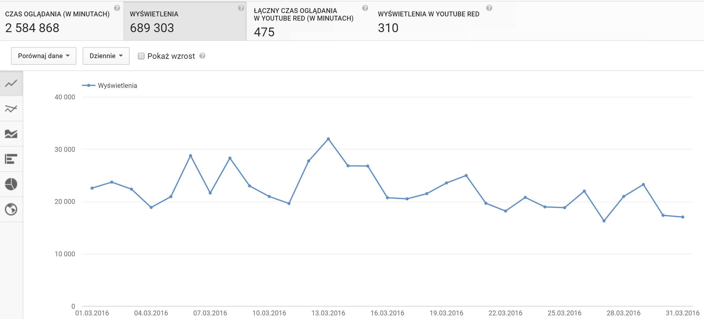 Średnia ilość wyświetleń na miesiąc marzec 2016.